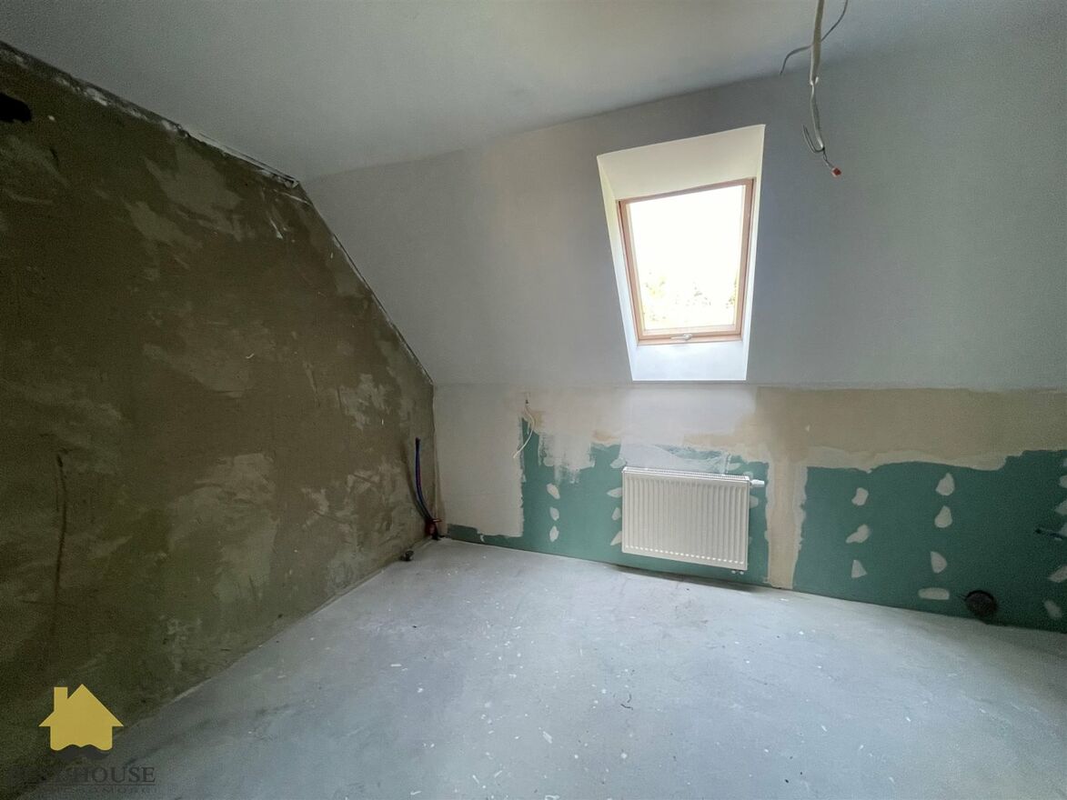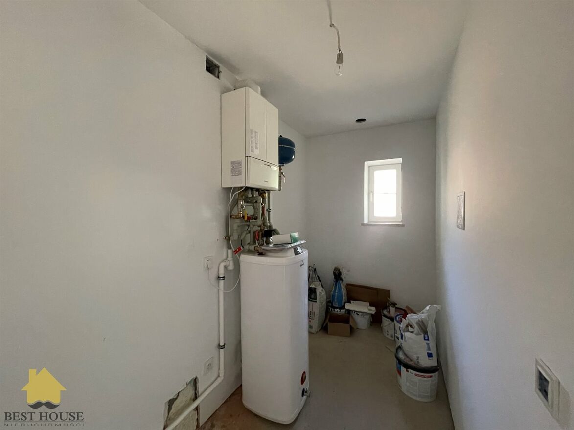 Nieruchomość jest w stanie surowym zamkniętym - idealna do własnej aranżacji. Budynek został ocieplony styropianem, dach pokryty jest trwałą dachówką ceramiczną