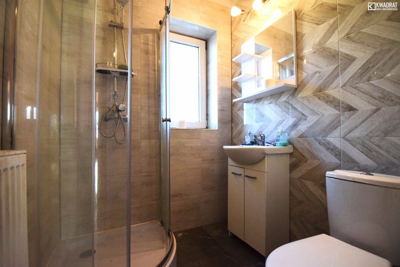 Na części nieruchomości (na działce o pow. 422 m2) usytuowany jest dom z lat 70. - zbudowany z betonu komórkowego suporex i cegły, ocieplony steropianem, z blachą na dachu. Dom przeznaczony w środku do generalnego remontu (w ubiegłym roku wykonana została część prac - wymiana części okien na PCV, wyremontowana jedna łazienka oraz jeden z pokoi).